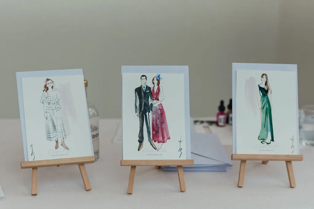 - A live illustrator, capturing special moments and creating portraits for guests to take home